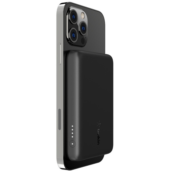 Deze BoostCharge powerbank gebruikt de MagSafe-technologie van uw iPhone 13 om uw toestel optimaal draadloos op te laden. Hierbij wordt de camera van uw telefoon niet geblokkeerd zodat u deze gewoon kunt blijven gebruiken tijdens het opladen. Het is ideaal voor gebruik op reis of tijdens uw dagelijkse rit naar school of werk, en geeft uw batterij snel een boost, waar u ook bent. Een ledlampje waarschuwt u wanneer de powerbank herladen moet worden en dankzij de ondersteuning voor passthrough opladen kunt u uw telefoon ook opladen tijdens het herladen van de powerbank.