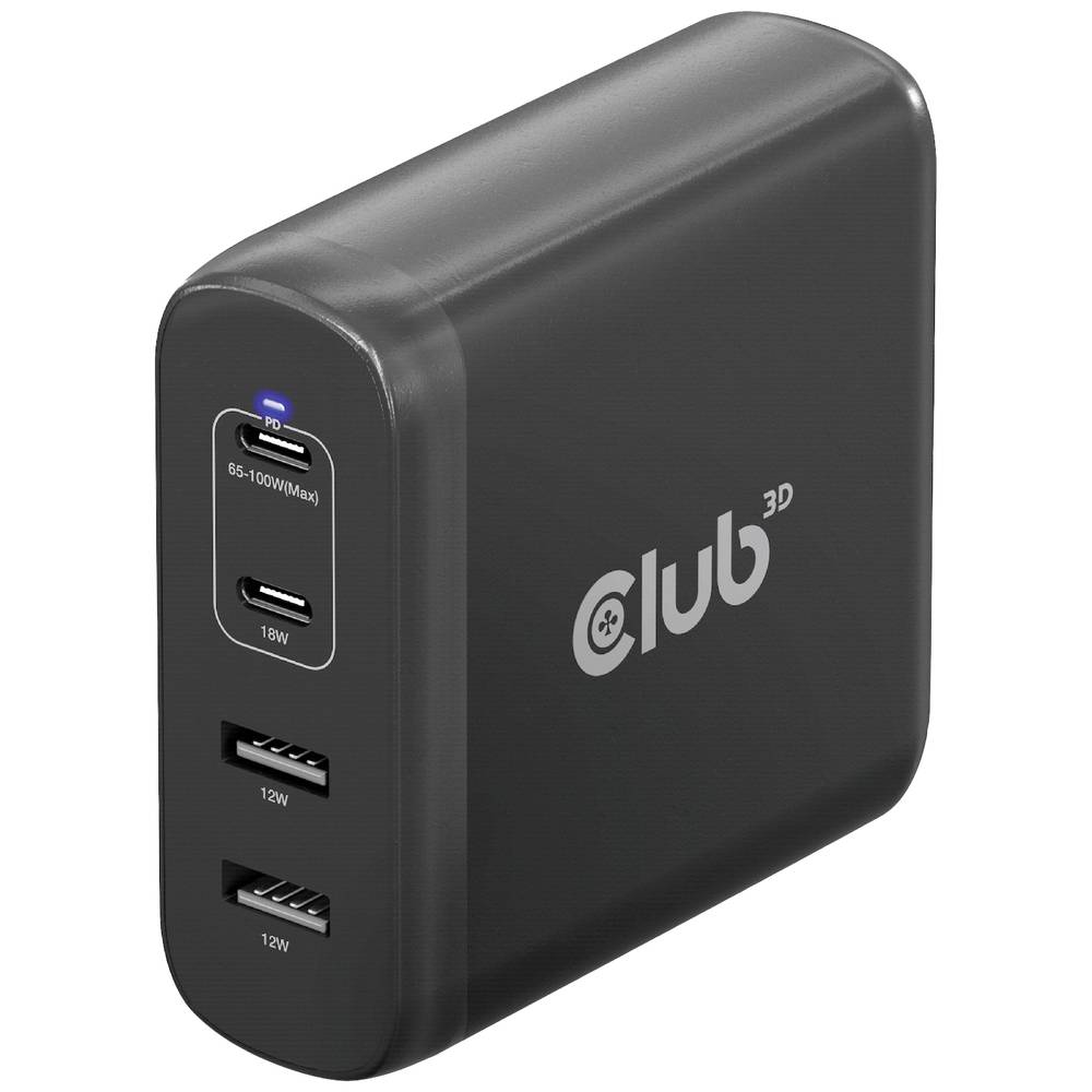 De club3D CAC-1912 oplader 100W GaN-technologie beschikt over vier poorten. USB type A (2x) en type C (2x), Power…