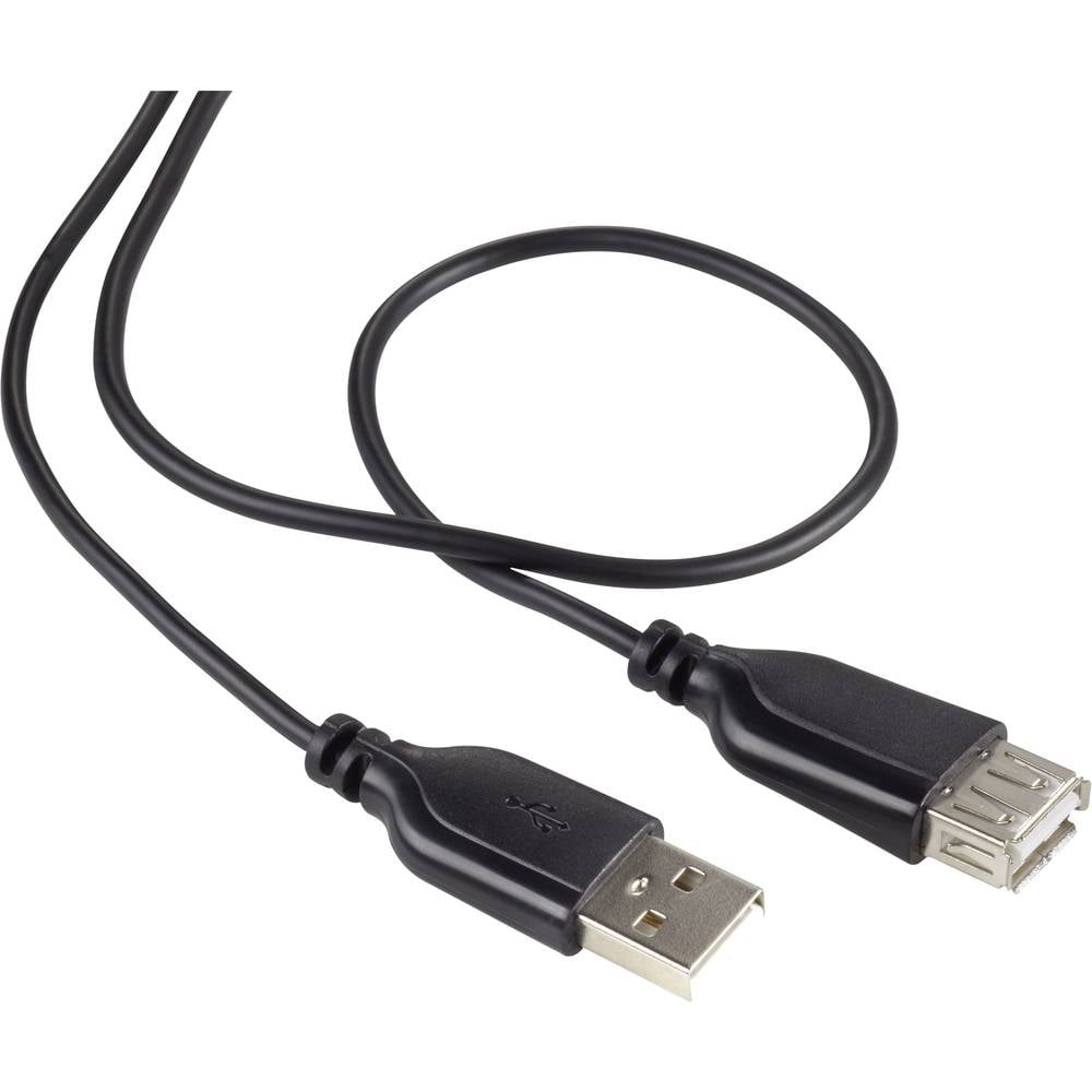 Renkforce USB-kabel USB 2.0 USB-A stekker, USB-A bus 1.00 m Zwart SuperSoft-mantel RF-4080795