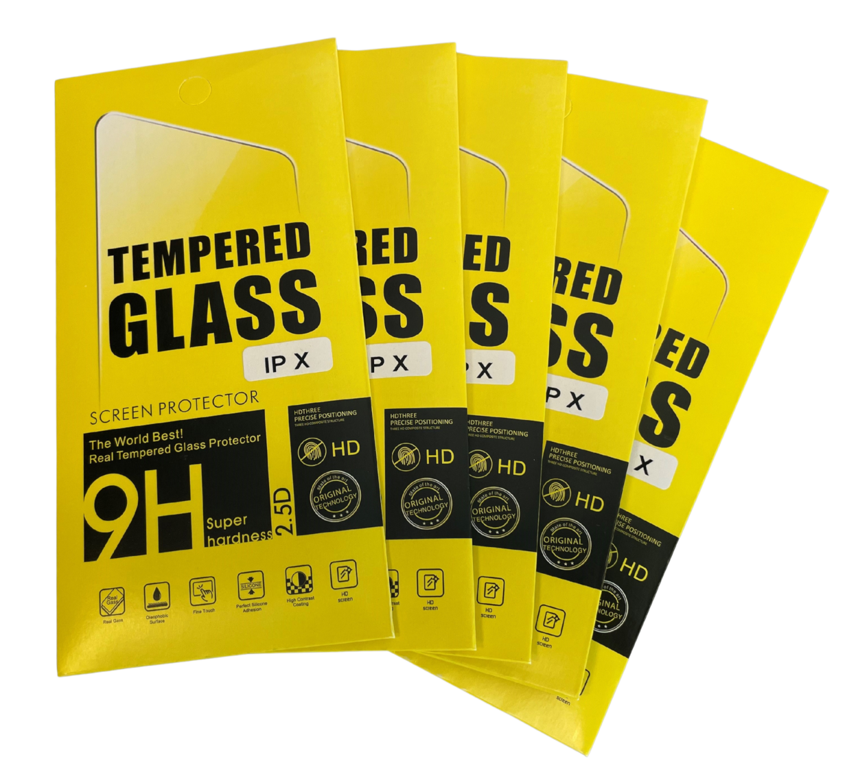 Tempered Glass Hardheid 9H Geschikt voor iPhone X. Een verpakking bevat vijf screenprotectors.
