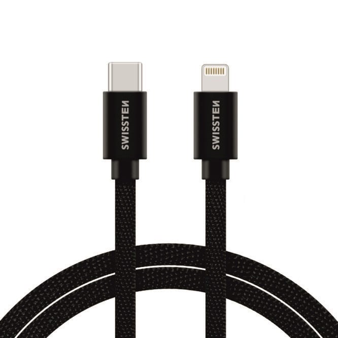 De gecertificeerde Zwarte Swissten Lightning naar USB-C kabel van 120 centimeter is een gevlochten lightning kabel die gecertificeerd is door Apple. Kabels die goedgekeurd zijn door Apple zijn getest en veilig bevonden om gebruikt te worden voor iPhone en