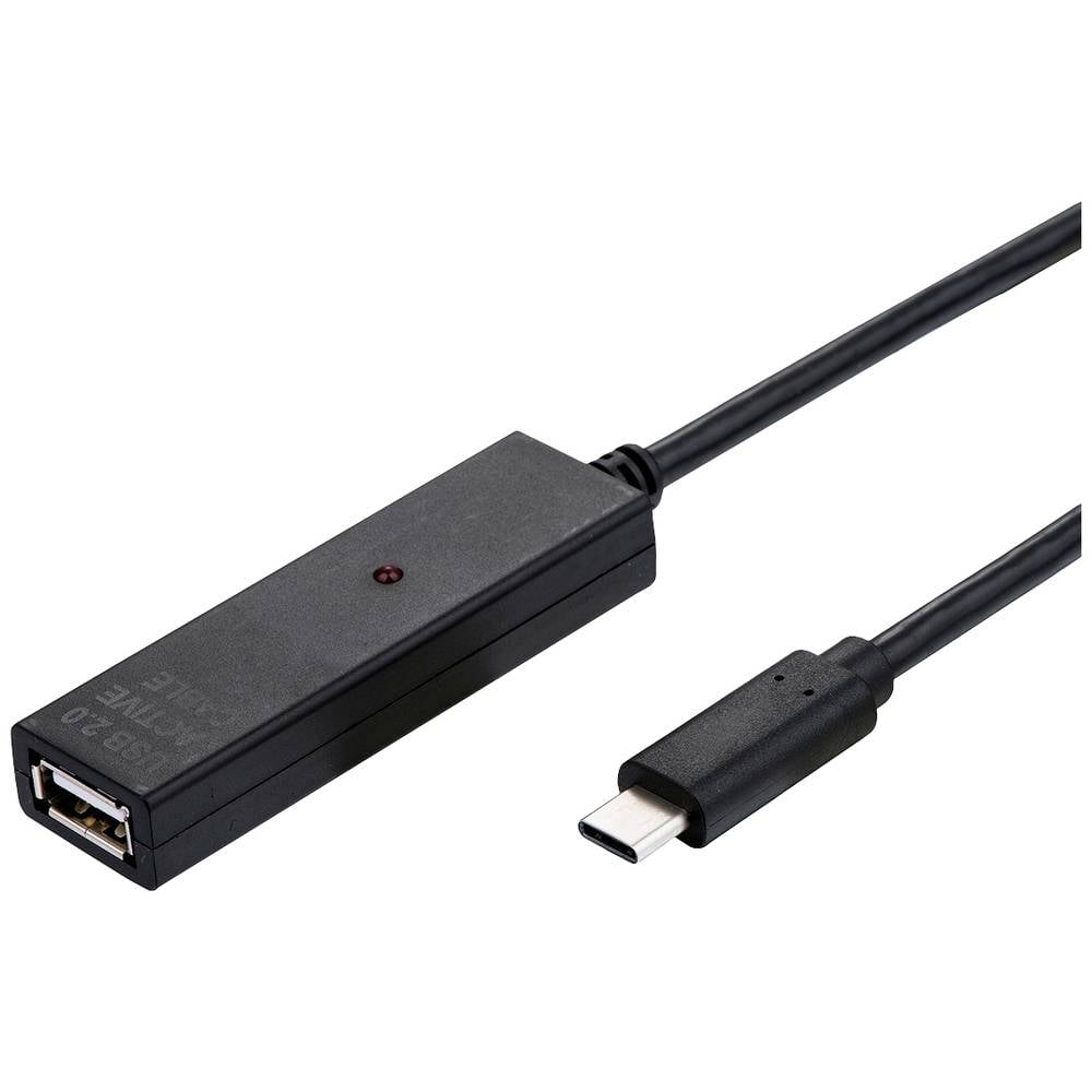 Actieve USB 2.0-verlengkabel met type C-stekker en type A-bus voor de verbinding van bijvoorbeeld een MacBooks/Ultrabook met een externe harde schijf (SSD/HDD) of een printer over grotere afstand….