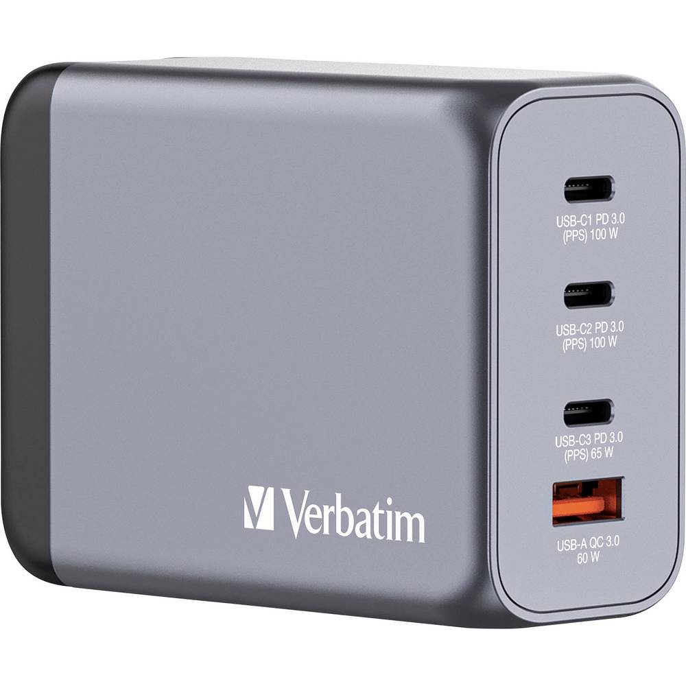In de 200 Verbatim gaN-oplader zijn twee USB-C PD 100 W-aansluitingen, een USB-C PD 65 W-aansluiting en een USB-A QC 3.0-aansluiting in een slank,…