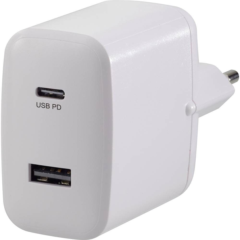 De compacte USB-stekkerlader beschikt over USB- en USB-C-uitgang met Power-Delivery-technologie….